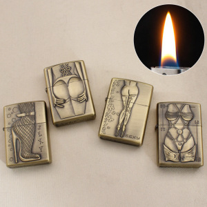 建泰JT6215个性美女浮雕工艺煤油打火机 金属复古砂轮点火器批发