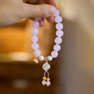 【紅雪】粉玉瑠璃刺繍玉手串金持ち花