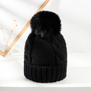 秋冬のニット帽の女性の新型欧米の純色は簡単に頭の毛糸のウールの帽子をかぶせて、厚いベルベットを着て保温します。