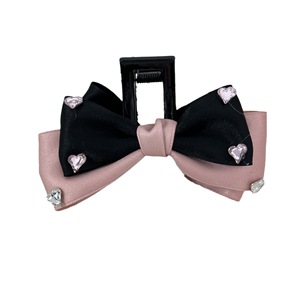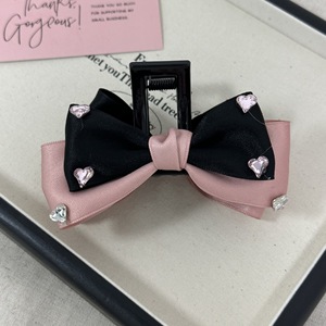ピンクと黒のラインストーンのリボンクリップ、高級ハーフタイヘアクリップ、サメクリップ、甘い女の子のヘアピンヘアアクセサリー