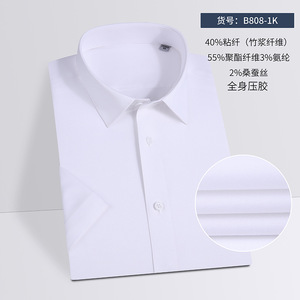 绢糸竹繊维高级感半袖メンズシャツブルーホワイト夏通勤キャリアメンズシャツ