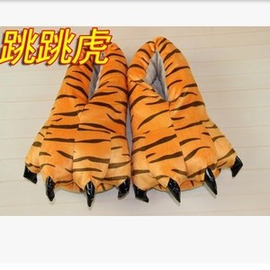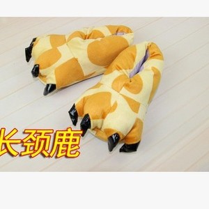 秋冬男子学生の家庭綿靴綿は恐竜の爪靴の超柔らかい水晶の毛のプリントのキリンを引き延ばします。