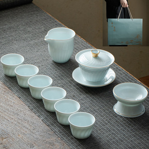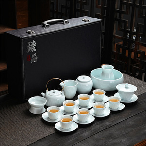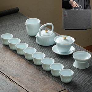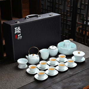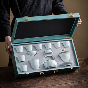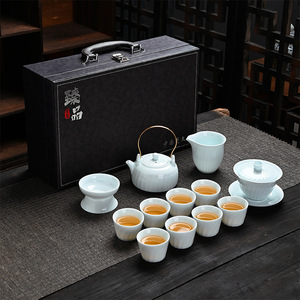 ギフト工夫茶器セット卸売り家庭用ロゴ蓋碗提梁壺開業徳化陶磁器茶器セット