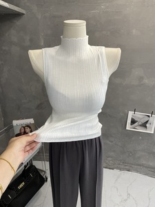 自留 ~ 版型がとてもいいです。袖なしの半高襟の底のシャツのベストの上着の女性は純粋にタイトなtシャツの中で合わせたいです。