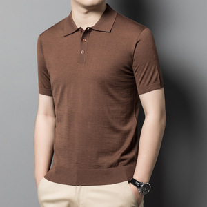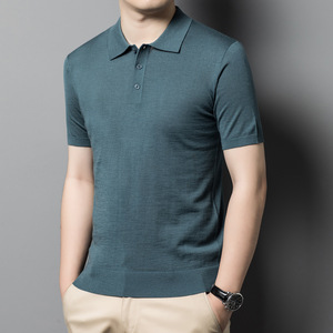 【60番手精紡】ウールポロシャツ メンズ ウールセーター 薄手 半袖 襟付きTシャツ ニット半袖トップス