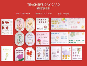 教師の日の手描きカード (合計 48 枚/パック)。