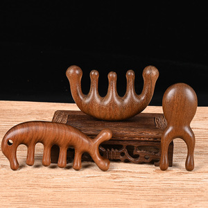 メーカー檀木マッサージ櫛眼部木櫛経絡櫛金糸檀五指櫛マッサージ器櫛五歯櫛ロゴ