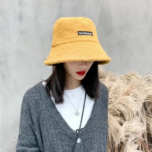 レザーラベル ラビット ベルベット バケット ハット - ベージュ