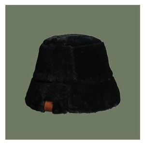 レザーラベル ラビット ベルベット バケット ハット - ブラック
