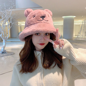 秋冬の熊の耳の漁師の帽子のぬいぐるみは厚くて防寒します。