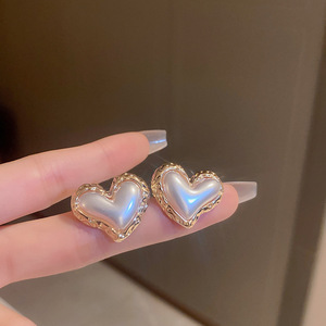6#シルバー ニードル ホワイト ラブ パール タッセル イヤリング