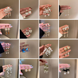 銀の針の花の蝶結びの真珠のフリンジのイヤリングの優雅な百合のイヤリングの軽い豪華な高級感のイヤリングの女性の卸売り