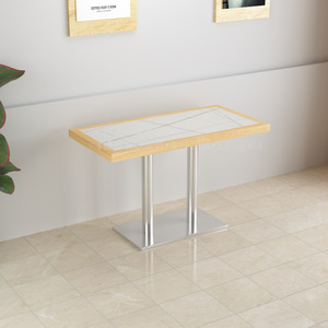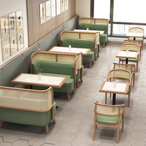 無垢材のダイニングテーブルと椅子の組み合わせ、商業ホテル、シンプルなバースナック、デザート、カフェ、ミルクティーショップ、ラウンドテーブル、長方形テーブル