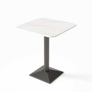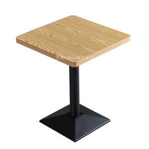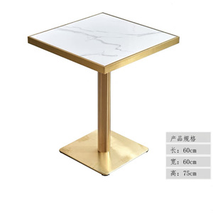 シャンパン色のプレートの四角いテーブルの鉄の足
