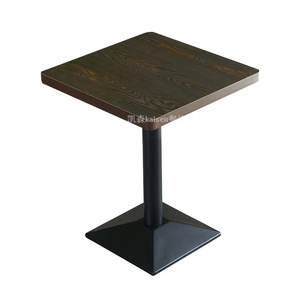 濃い茶色のプレートの四角いテーブルの鉄の足