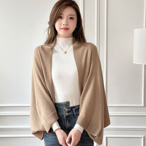 ウールニットショール2024秋冬の新型の外はファッションの洋風の高級なカーディガンのマフラーの女性を掛けます。