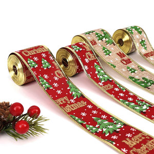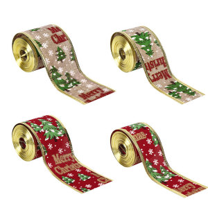 クリスマスの蝶々のリボンクリスマスツリーの縁取りは麻の拷問をまねて祝日の装飾品のリボンを持ちます。