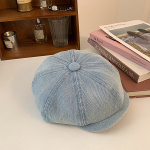 デニムの前進帽子の女性秋冬韓国版は顔が小さい八角形のベレー帽のフランス式の復古の大きい頭の周りの画家の帽子の潮を現します。
