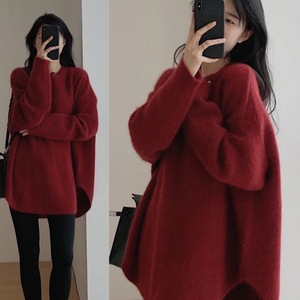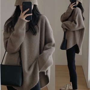 日韓の新型の怠惰な風のシンプルなレトロなニットのセーターの女性の秋冬の外は中の長いタイプのオープンフォークの百合の上着を着ます。