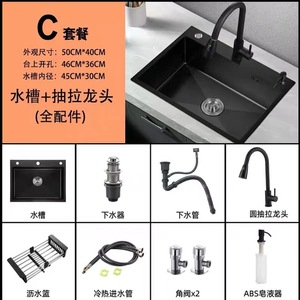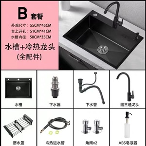 厚さ304ステンレス黒色ナノ飛雨滝厨房大単槽水槽洗面台上下ボウルプール