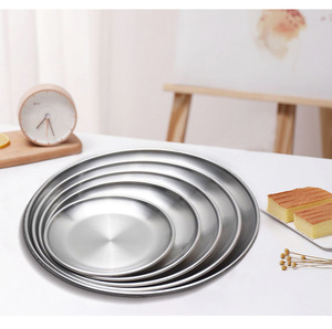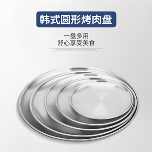 304ステンレス皿韓国式焼肉皿円盤シンプルトレー洋食皿ケーキ焼きバイキング皿卸売り