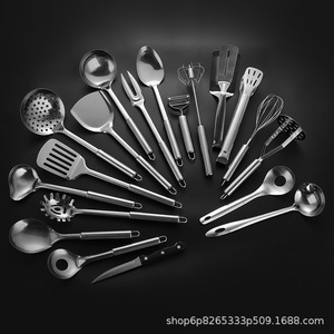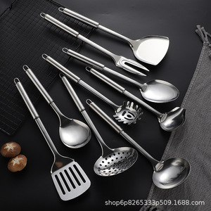 小さい円管の挿し手のステンレスの料理道具セットの鍋のシャベルはスプーンの刀のフォークを漏らして卵を打つ器の台所の小道具のセットを挟みます。