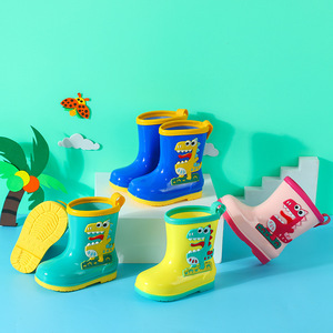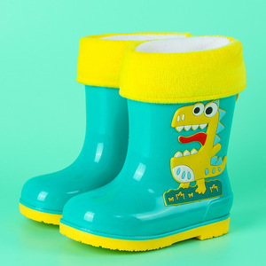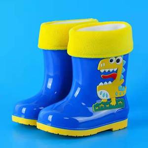 恐竜子供用幼稚園子供用レインブーツ滑り止め耐摩耗性中型および大型ブーツ子供用取り外し可能なベルベットウォーターシューズ幼児用