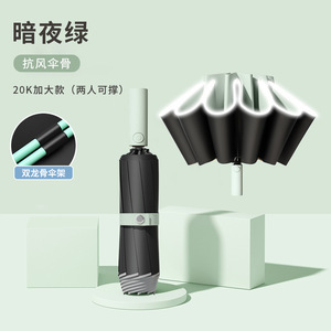 暗い夜の緑【20本の補強キールの逆方向に傘を収めて車に濡れないで紫外線を防ぎます】