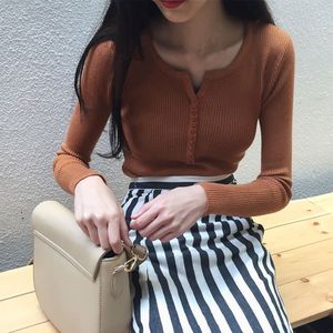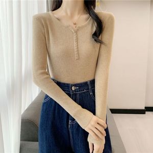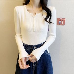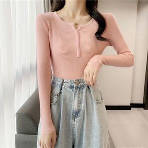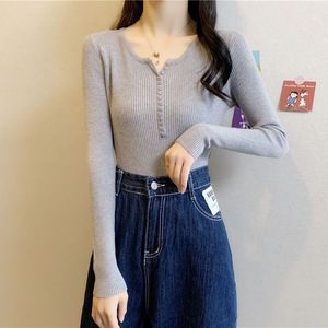 ニットの女性の春と秋冬の中にボタンの長袖を掛けて底の小さいシャツを打ちます。