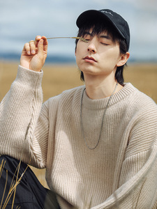 無地太い針ピットストリップテクスチャセーターメンズ秋と冬の新しいカップル日本のレトロなルーズラウンドネックヘビーニットセーター