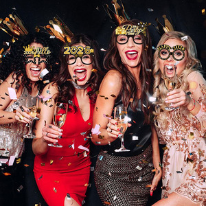 越境ブラックゴールド新年テーマ 2026年元旦春節写真撮影用小道具 紙製メガネ パーティーデコレーションセット