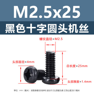 M1 m2鉄黒十字丸頭平尾機糸炭素鋼盤頭ボルト機歯ねじpm電子小ねじ