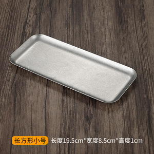 レトロな古いステンレスの四角の皿の喫茶店の正方形のトレーのお菓子のケーキの皿の平底のバーベキューの皿