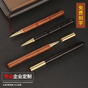 竹節檀木サインペン赤木宝珠筆レトロ広告ギフトペン中国紅実木筆彫刻ロゴ