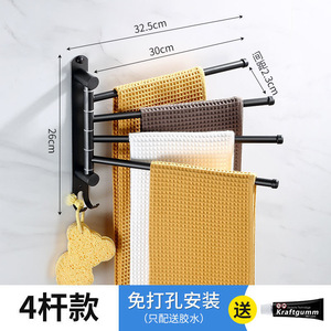 回転タオルバー穴なし304ステンレス製タオルラックダブルバーマルチバー浴室タオルラックハンガー3バー