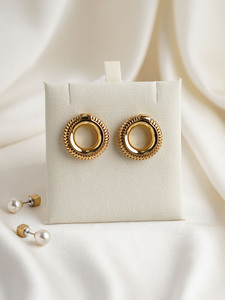 ロゴ入りベージュイヤリング、7.2x7(ネックレスイヤリング)
