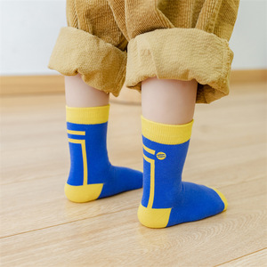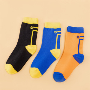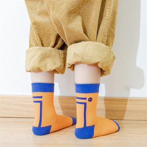 2023秋冬の子供の靴下の男の子の靴下の中で大きい子供の骨のない手の縫い目の潮流の純色の精練綿の中で靴下