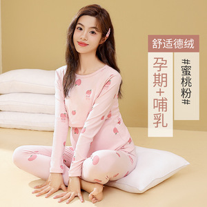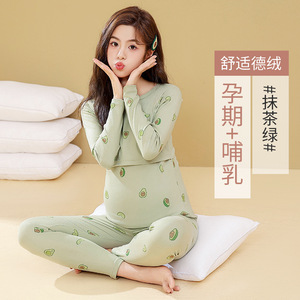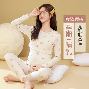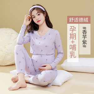 妊婦プリント秋衣秋ズボンセット秋冬授乳月子服妊娠期産後授乳保温下着妊婦服