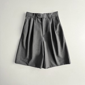 コレクションレベルの精紡ウール混紡ショートパンツ ~ シンプルなハイウエストの質感が痩せています。