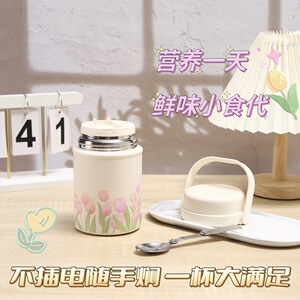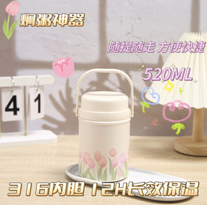 316ステンレスの新型手提げチューリップ大容量蒸し缶折り畳みスプーン煮粥銀耳携帯保温カップ
