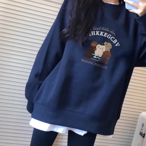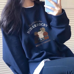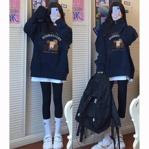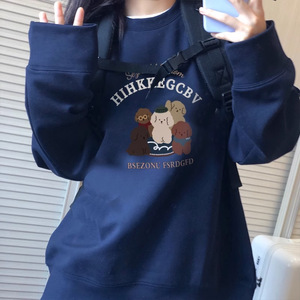 日系のレトロな紺色の帽子付きの女性の春秋ベルベットの古着の古い学校のゆったりした小柄なコート