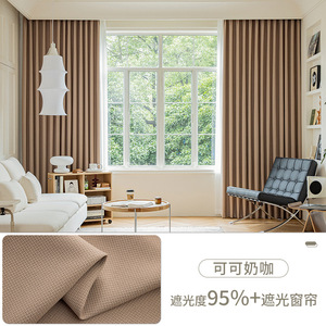 完全遮光カーテン、両面米粒綿、2025年新作ビーンコットン、リビングルーム、寝室、バルコニー、軽くて豪華、シンプルなウォータープルコットン