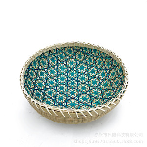 青い丸い花の竹かご 20*8 センチメートル