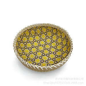 黄色の丸い花の竹かご 大 24*9CM