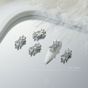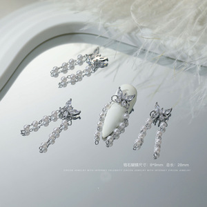 ネットの赤い新型のジルコンのネイルアクセサリーの蝶の愛の真珠の立体はダイヤモンドの爪を入れてチェーンを飾ってダイヤモンドを卸売りします。