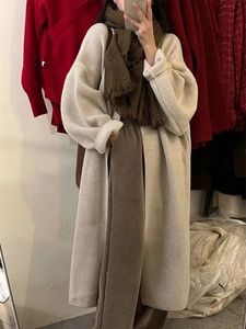 怠惰な風の中の長さは膝を過ぎてカーディガンのセーターを編みます。
