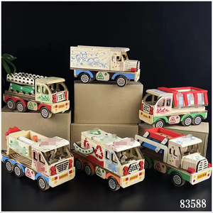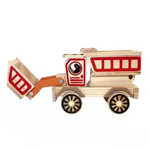 メーカー現物手作り玩具車模型消防車運搬車工事車観光地区木造工芸品バッチ