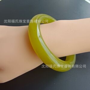 H天然玉の腕輪の氷の黄玉の腕輪の黄金の玉平は実物のために生放送を撮影します。