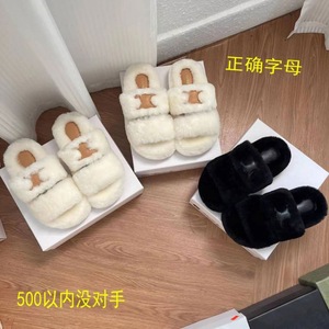 毛のスリッパの女性は2022年秋冬の羊の毛皮の一体の厚い底のカジュアルな凱旋門の白い一字のスリッパを着ます。