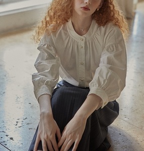 リラックス感のあるフランスのレトロな白いシャツの女性宮廷風灯籠袖八分袖シャツ